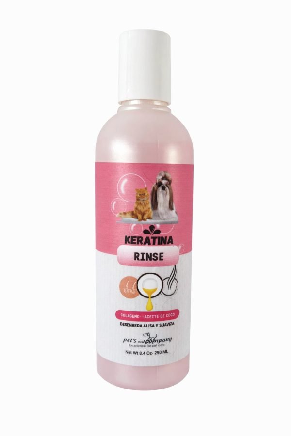 La Keratina Rinse con colágeno y aceite de coco está formulada para hidratar, suavizar y facilitar el desenredo del pelaje de tu mascota 🐕🐈. Su combinación de ingredientes ayuda a mejorar la textura del manto, dejándolo más manejable y con brillo natural.